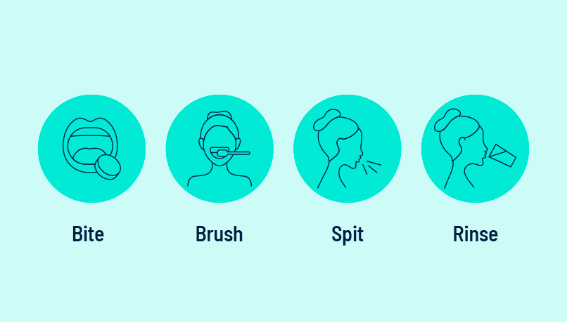 Brush: Wet your toothbrush and brush your teeth like normal—the tablet will foam up and clean your teeth effectively.